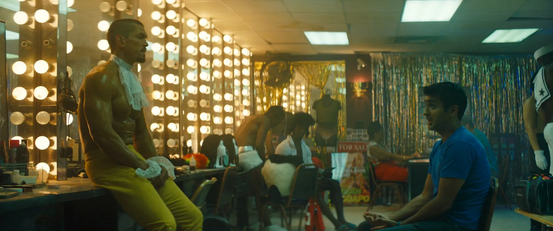 Dave Bautista as Vic, Kumail Nanjiani as Stu, Mira Sorvino as Angie McHenry, Natalie Morales as Nicole, Iko Uwais as Teijo, Betty Gilpin as Becca, Karen Gillan as Morris, Jimmy Tatro as Richie Sandusky, Steve Howey as Felix, Rene Moran as Amo Cortez, Amin Joseph as Leon, Christine Horn as Upscale Hotel Manager, Trevor Shand as Disc Jockey, Jared Logan as Complicated Directions Guy, Kyle Zingler as Drunk Jerk, Halleta Alemu as Hot Sorority Girl, Melody Peng as Hot Sorority Girl, Sean Oey as Science Project Boy, Robert Harvey as Snoring Old Man, Noah Benjamin as Distraught Man, Jennifer L. Marshall as Dog Owner, Roger Payano as Eye Doctor, Patricia French as Grandmother, Victoria Anastasi as USC Student, Julia Vasi as USC Student, Bruno Rose as Bartender, Amber Chardae Robinson as Amber, Fernando Martinez as Alamitos Gangbanger, Mike Endoso as Alamitos Gangbanger, Scott Lawrence as Dr. Branch, Joshua Mikel as Ponytail Goon, Apollo GT as Male Stripper, James William Ballard as Clippers Fan / Shooter, Darin Ferraro as Drug Dealer, Jennifer Riker as Art Collector, Jason-Jamal Ligon as Gallery Patron, Vince Pisani as Gallery Patron, Pete Dondero as Sriracha Night Shifter, Si Chen as Sriracha Night Shifter, Malachi Jr. as Uber Driver Tariq, Daniel Suárez as SUV Uber Driver, Austin Dillon as SUV Uber Driver, Ty Dillon as SUV Uber Driver, Roscoe Johnson as LAPD Beat Cop, Stroker as Pico, William DeAtley as Josh (uncredited), Rick Shuster as Helicopter Pilot (uncredited), Sam Medina as Goon (uncredited)