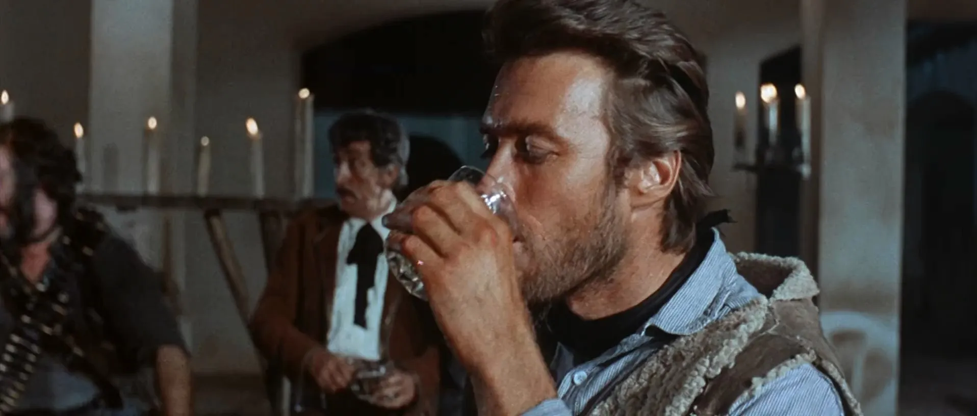 Clint Eastwood as Joe, Marianne Koch as Marisol, Gian Maria Volonté as Ramón Rojo, Wolfgang Lukschy as John Baxter, Sieghardt Rupp as Esteban Rojo, Joseph Egger as Piripero, Antonio Prieto as Don Benito Rojo / Don Miguel Rojo, José Calvo as Silvanito, Margarita Lozano as Consuelo Baxter, Daniel Martín as Julián, Benito Stefanelli as Rubio, Mario Brega as Chico, Bruno Carotenuto as Antonio Baxter, Aldo Sambrell as Rojo Gang Member, Lorenzo Robledo as Baxter Gunman #1 (uncredited), Antonio Molino Rojo as Baxter Gunman #2 (uncredited), Luis Barboo as Baxter Gunman #3 (uncredited), Juan Cortés as Cavalry Captain (uncredited), William R. Thompkins as Baxter Gunman (uncredited), Fernando Sánchez Polack as Rojo Gang Member Crushed by Wine Cask (uncredited), José Canalejas as Rojo Gang Member (uncredited), Jose Halufi as Rojo Gang Member (uncredited), Nino Del Arco as Jesus (uncredited), Antonio Moreno as Juan De Dios (uncredited), Frank Braña as Baxter Gunman (uncredited), Álvaro de Luna as Rojo Gang Member (uncredited), Lee Miller as Man at Bar (uncredited), José Orjas as (uncredited), Manuel Peña as (uncredited), Antonio Pica as Rojo Gang Member (uncredited), Julio Pérez Tabernero as Baxter Gunman (uncredited), José Riesgo as Mexican Cavalry Captain (uncredited), Umberto Spadaro as Miguel - Rojo Gunman (uncredited), Peter Tevis as The Balladeer (voice) (uncredited), Edmondo Tieghi as Mexican Soldier (uncredited), Antonio Vico as (uncredited), Luis Rodríguez as Rojo Gang Member (uncredited)